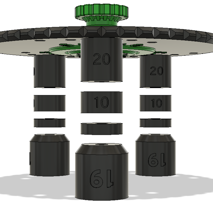 For the first time, it is recommended to use all provided spacers. Slide the assembly through the appropriately labeled holes from the back of the tool.